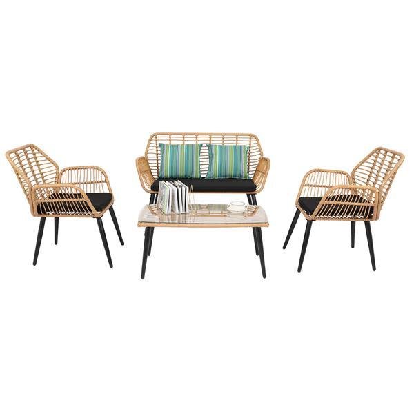 PE Steel Outdoor Wicker Rattan Chair Four-Piece Patio Furniture Set Yellow - as picture